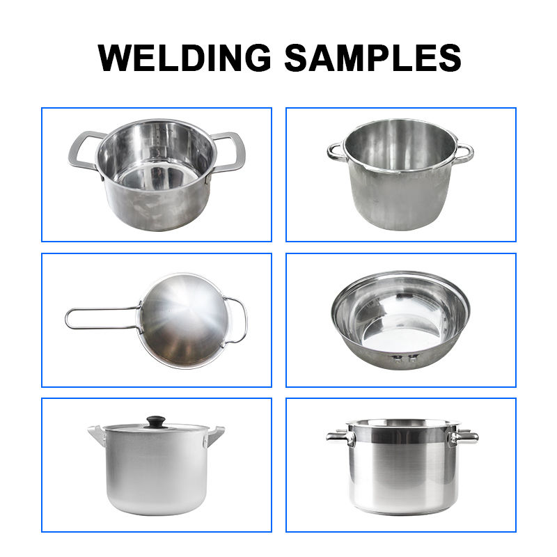 Double side SS cookware pot handle projection welding machine is used for welding the pot handles. It can help to weld the two handles at the same time to increase efficiency. Use projection welding method to do welding for the two handles. Provided by China SS cookware pot handle projection welding machine suppliers, this 15KVA machine is equipped with one set of capacitor discharge welding power source. It is suitable to weld the pot body thickness 1.2mm while the handle diameter is 5mm (with emboss).